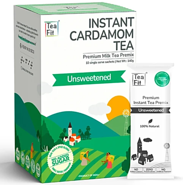 Teafit Premium Instant Milk Tea Premix – Cardamom, Unsweetened, 140 g (10 Sachets x 14 g each)